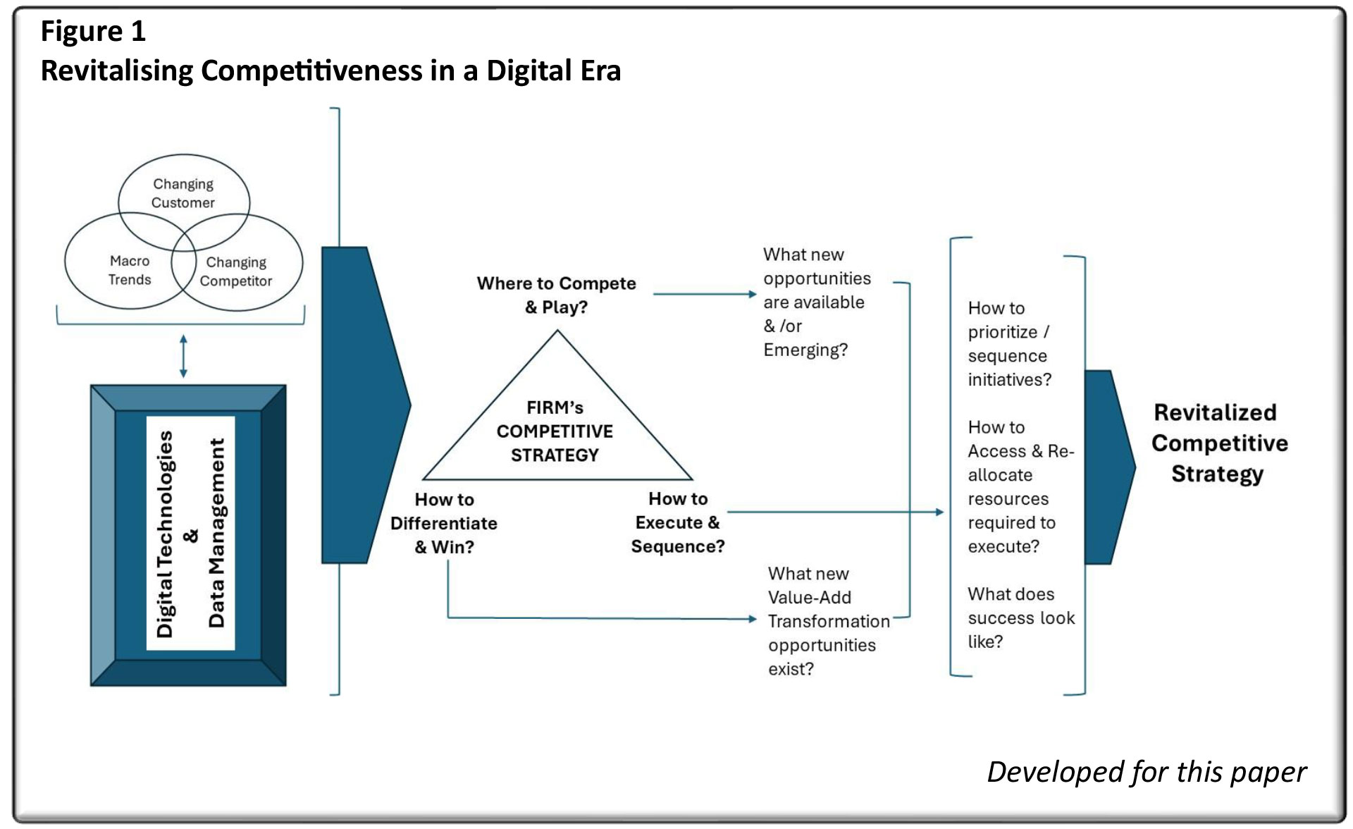 Adopting a strategic approach, the framework presented in Figure 1 outlines how digital technologies and data management filtered through a competitive strategy lens can help organisations revitalise.